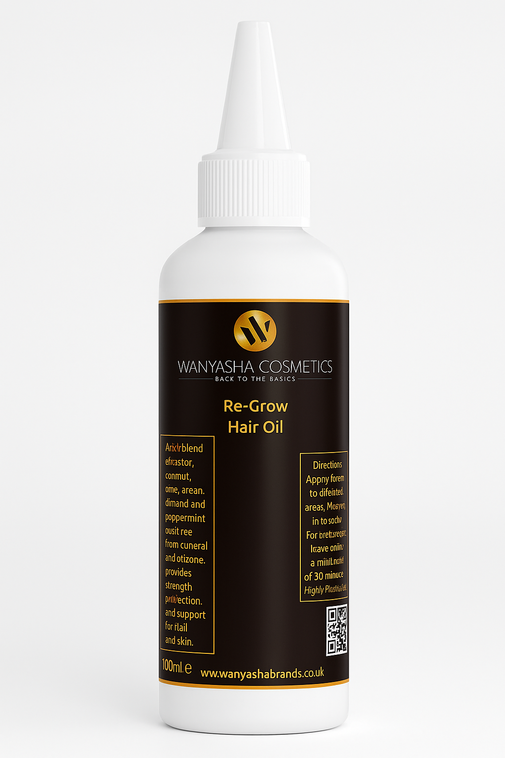 Wanyasha Cosmetics Re-Grow Hair Oil is precisely and concentrated formula , is designed to support hair follicle health and encourage natural regrowth. By deeply nourishing the scalp and strengthening hair strands, this oil helps reduce hair thinning and breakage. Its expert blend works to revitalize and balance the scalp environment, promoting thicker, healthier hair over time. Ideal for those aiming to restore hair density and improve overall scalp condition. DO NOT APPLY MORE THAN 3 TIMES A WEEK.